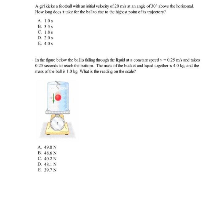 Solved A girl kicks a football with an initial velocity of